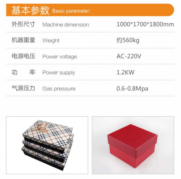 3.整機(jī)烤漆,美觀漂亮,方便簡(jiǎn)單,易學(xué)易懂,是禮品盒生產(chǎn)企業(yè)必不可少的專用設(shè)備。